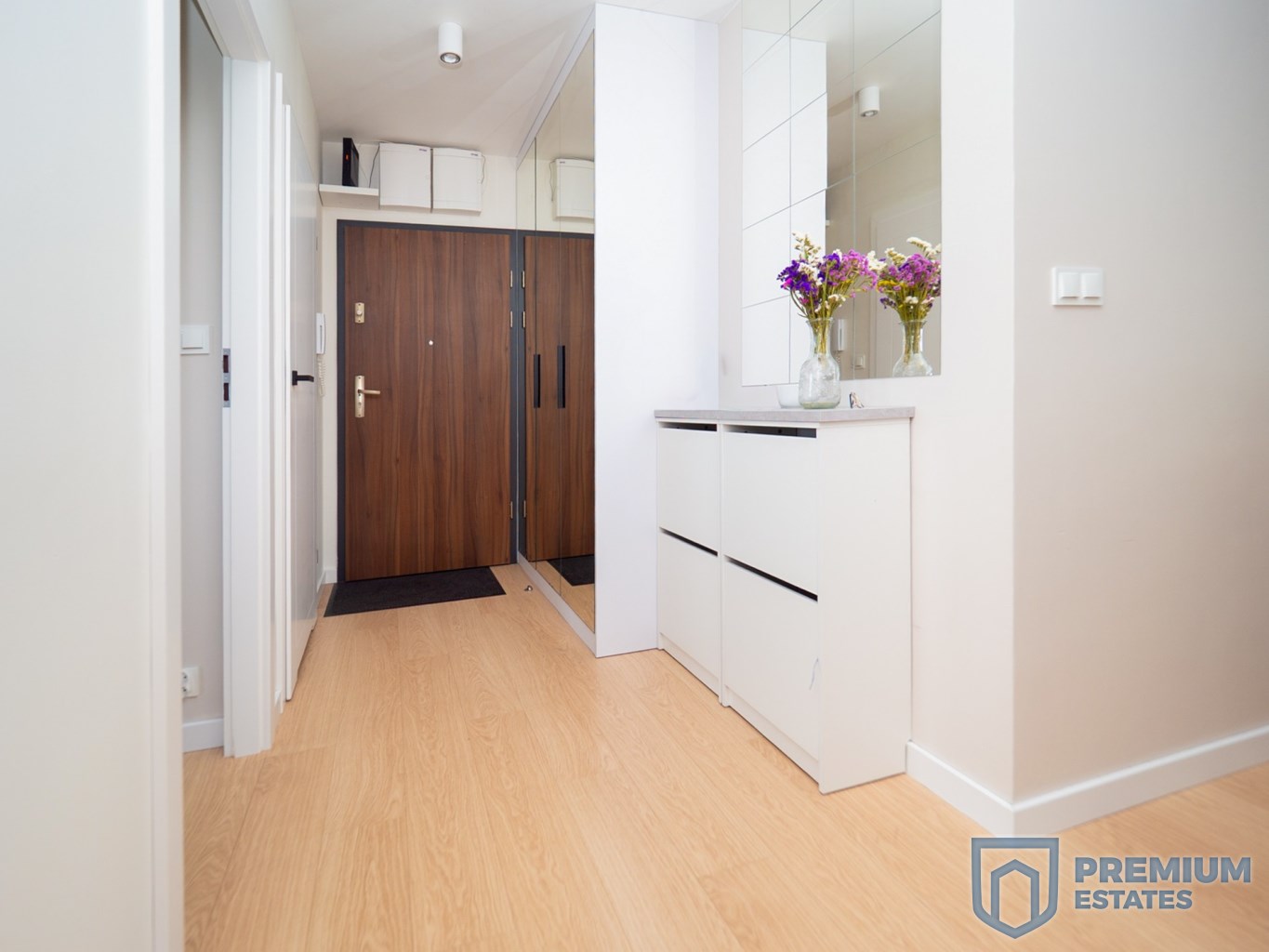 funkcjonalny hol z miejscem do przechowywania.