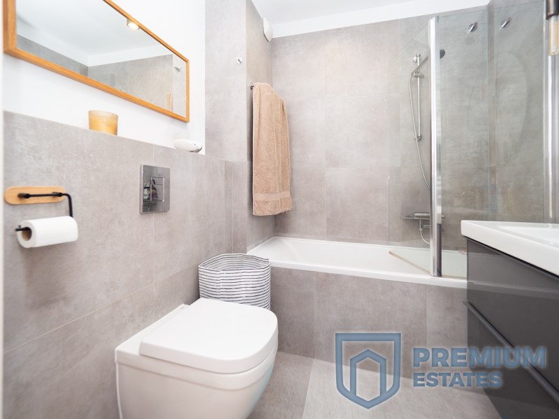 Mieszkanie zostało wykończone z dużą dbałością o detale i wyróżnia się wysoką jakością wykończenia. Lokal jest w pełni umeblowany i gotowy do wprowadzenia. Dodatkowym atutem jest klimatyzacja, zapewniająca komfort użytkowania przez cały rok.