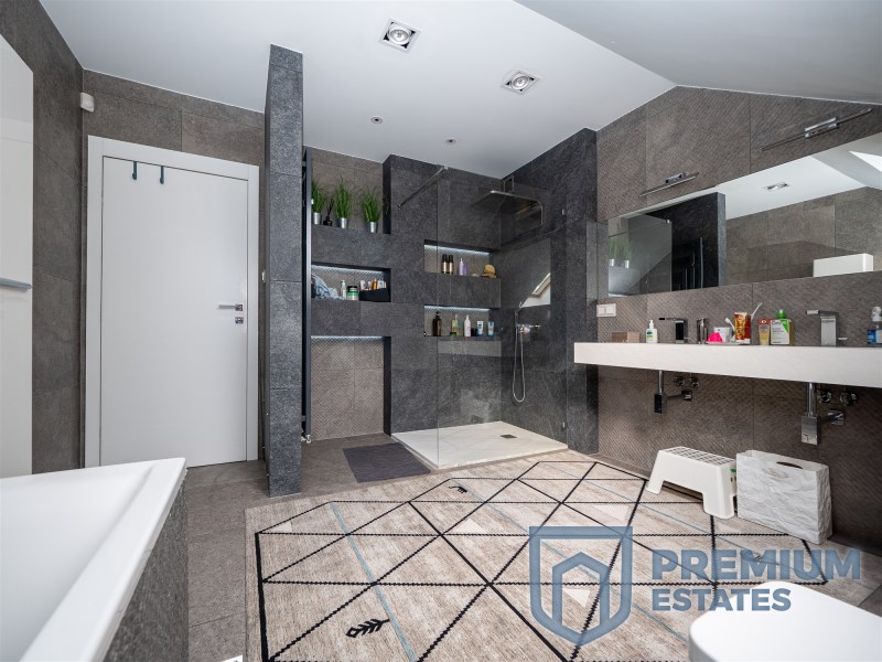 The house is finished to a premium standard, mostly from the top shelf MAX-FLIZ. A 5-meter aluminum window in the HST system (sliding, thresholdless) was installed in the living room at the expense of the balcony in order to maximize the lighting of the living room and kitchenette. The living room has a direct exit to a 40 m2 terrace, which is made of stoneware tiles placed on feet.