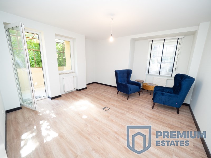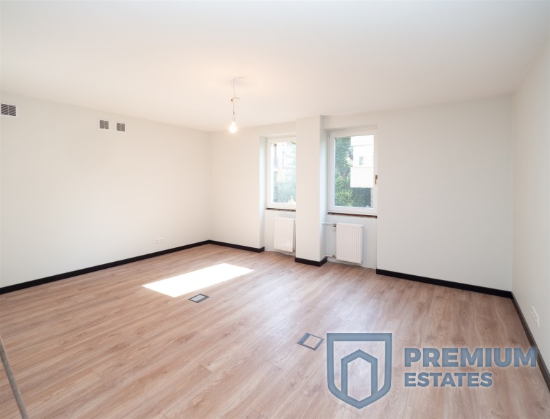 The apartment is located on the ground floor in a well-kept block of flats (entrance through the staircase, not from the street). Currently, it is arranged as an office, but has the status of a residential premises. The area of 70 m2 consists of: