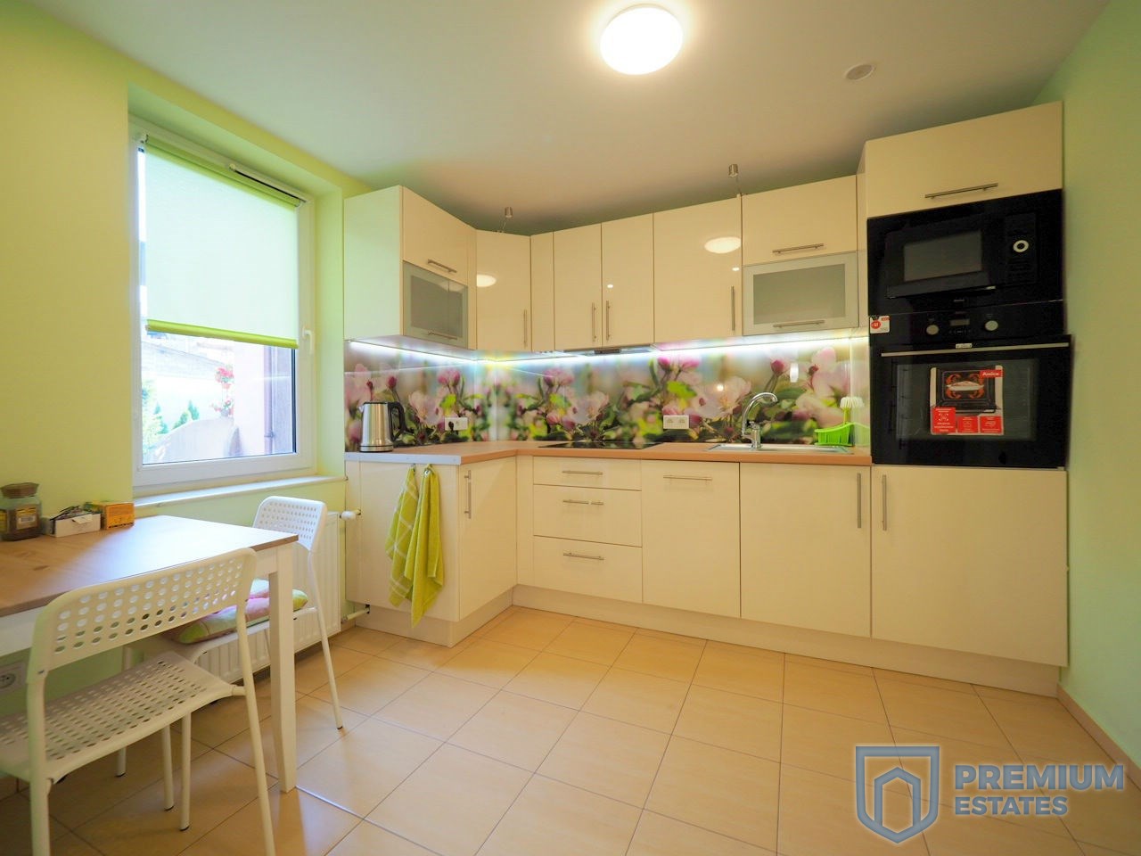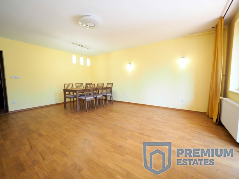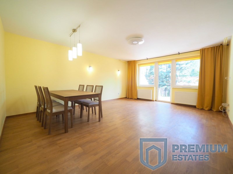 and a terrace and 150 m2 of garden exclusively for the use of residents. District heating, hot water from a boiler (in the future also from the municipal network). North and south exposure, very bright apartment. The apartment includes a large basement of 12 m2 and a utility room under the terrace. Possibility of parking in front of the building (no zone).