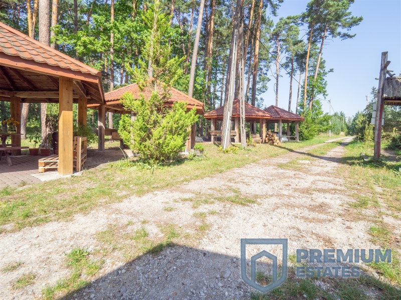 Ośrodek wypoczynkowy umiejscowiony jest na trzech działkach o pow. 5,3ha, 0,4ha, 0,06ha. Na tym terenie znajdują się budynki budowlane (restauracyjno-magazynowy, socjalno-magazynowy, mieszkalno-socjalny), zbiornik wodny o pow. ok. 3,7ha oraz liczne domki kempingowe. Budynki posiadają instalację elektryczną, wodną oraz odpływy kanalizacyjne do szamba.
