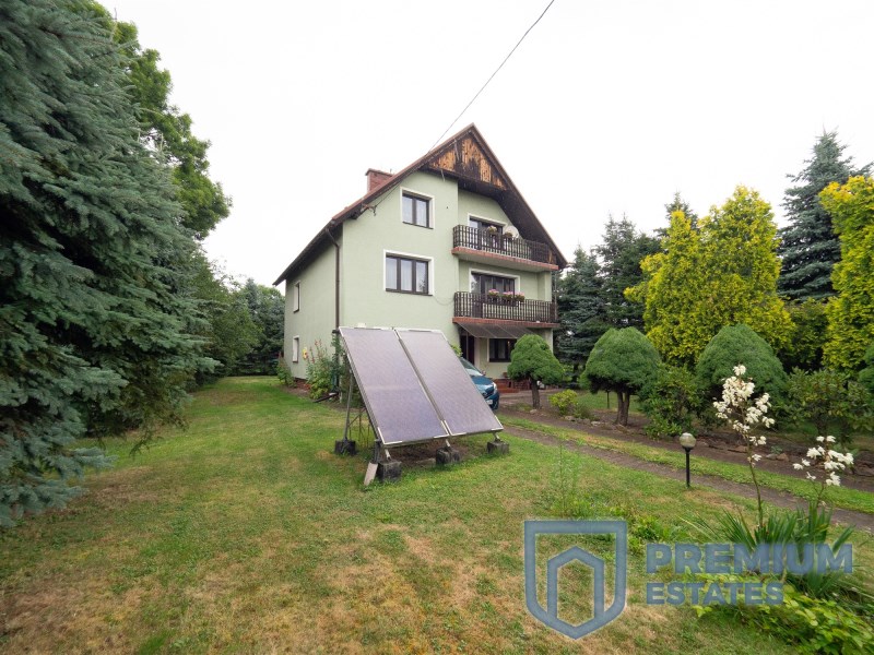 Wolnostojący dom wybudowany w 1995r znajduje się na 11 arowej, ładnie zagospodarowanej działce otoczonej wysokimi drzewami. Liczy 210m2 i na tę powierzchnię składają się: