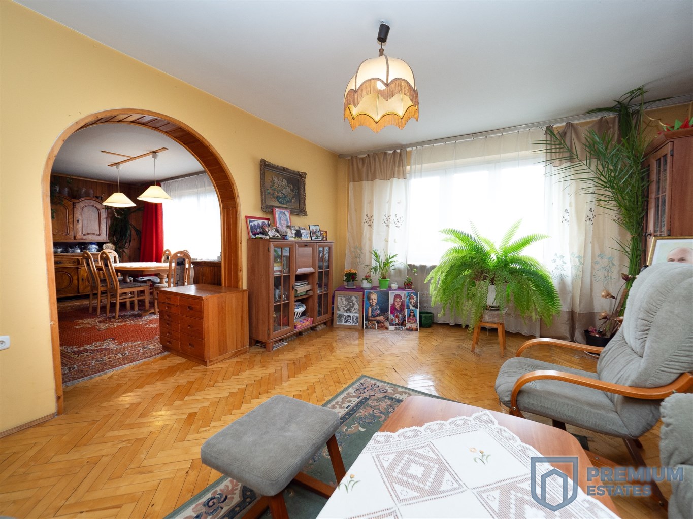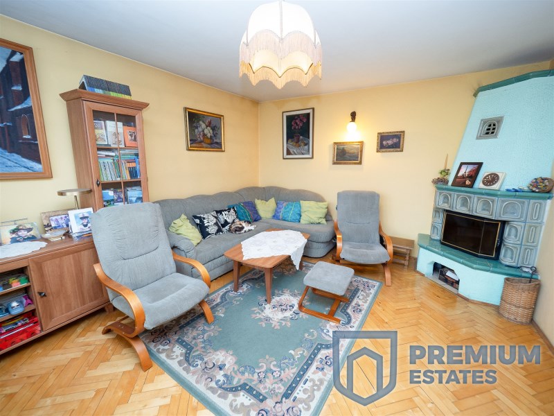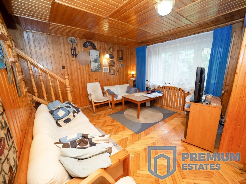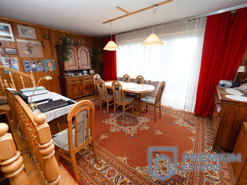A detached house built in 1995 is located on an 11 ares, nicely developed plot surrounded by tall trees. It has 210m2 and this area consists of: