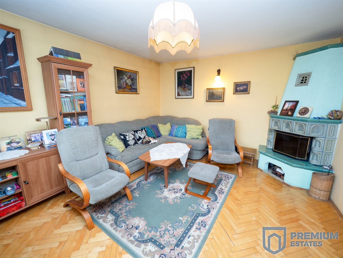 - salon z kominkiem