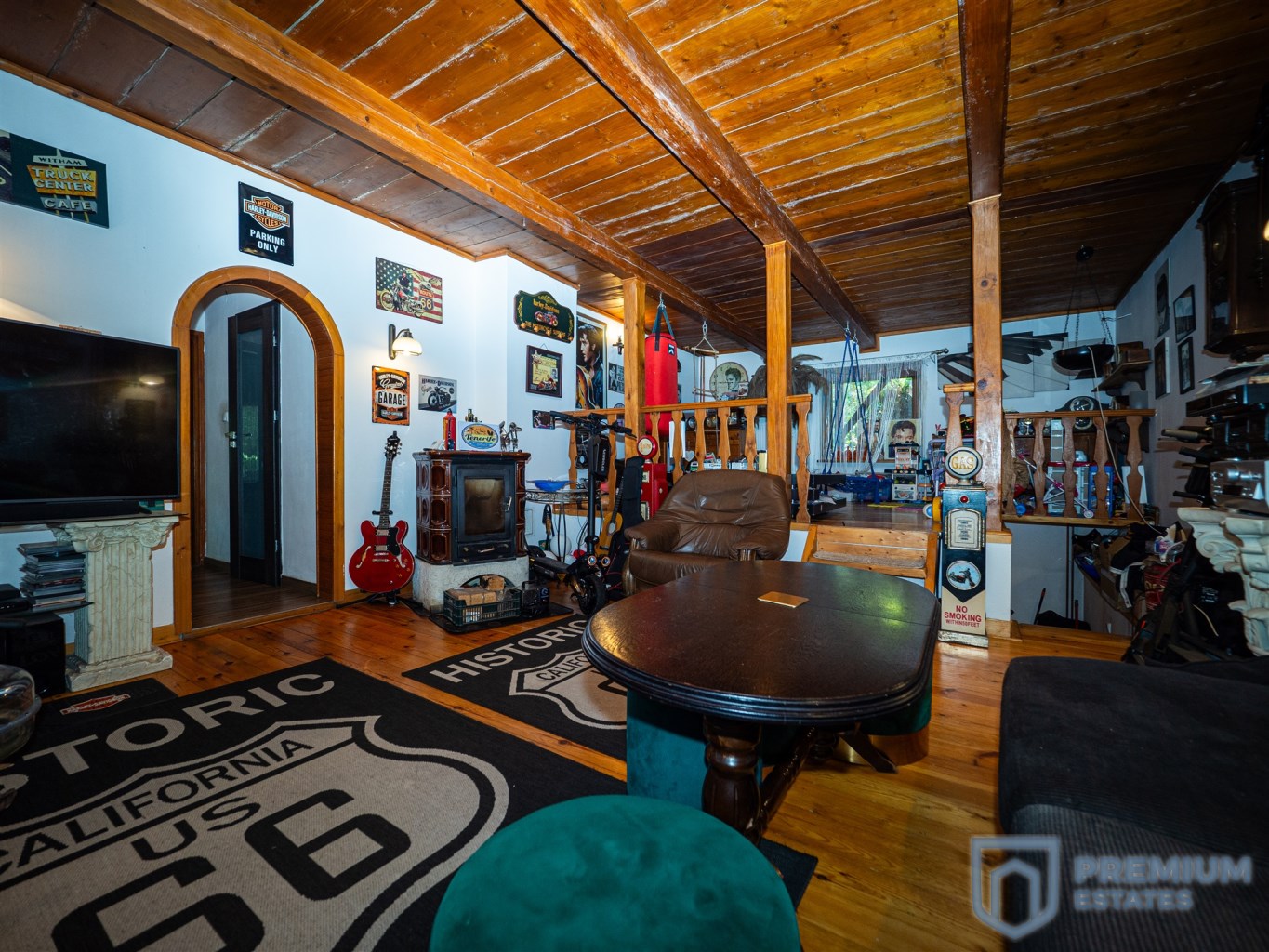 Parter: O powierzchni 104 m², gdzie znajduje się przestronna kuchnia otwarta na jadalnię, salon z antresolą, sypialnia, łazienka z nową wanną, przedpokój oraz kotłownia. Z parteru można bezpośrednio wyjść na taras, a także korzystać z wbudowanego garażu.
