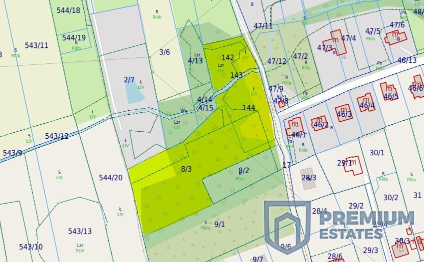 Budowlana i przylegająca do niej działka obejmująca łąki trwałe.
