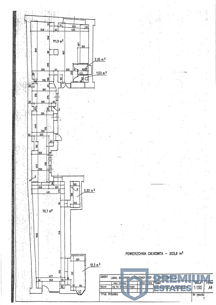 Liczy 203,9m2 i znajduje się na parterze w kamienicy. Wejście od ulicy z witryną. Na tę powierzchnię składają się: