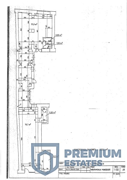 It measures 203.9 m2 and is located on the ground floor of a tenement house. Entrance from the street with a window. This surface consists of:
