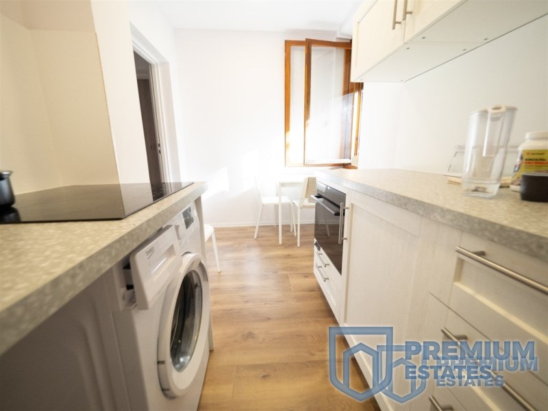 - pomieszczenie socjalne/kuchnia (pralka, płyta grzewcza, piekarnik, lodówko-zamrażarka, stół, krzesła, meble w zabudowie) - z możliwością przerobienia na osobny gabinet