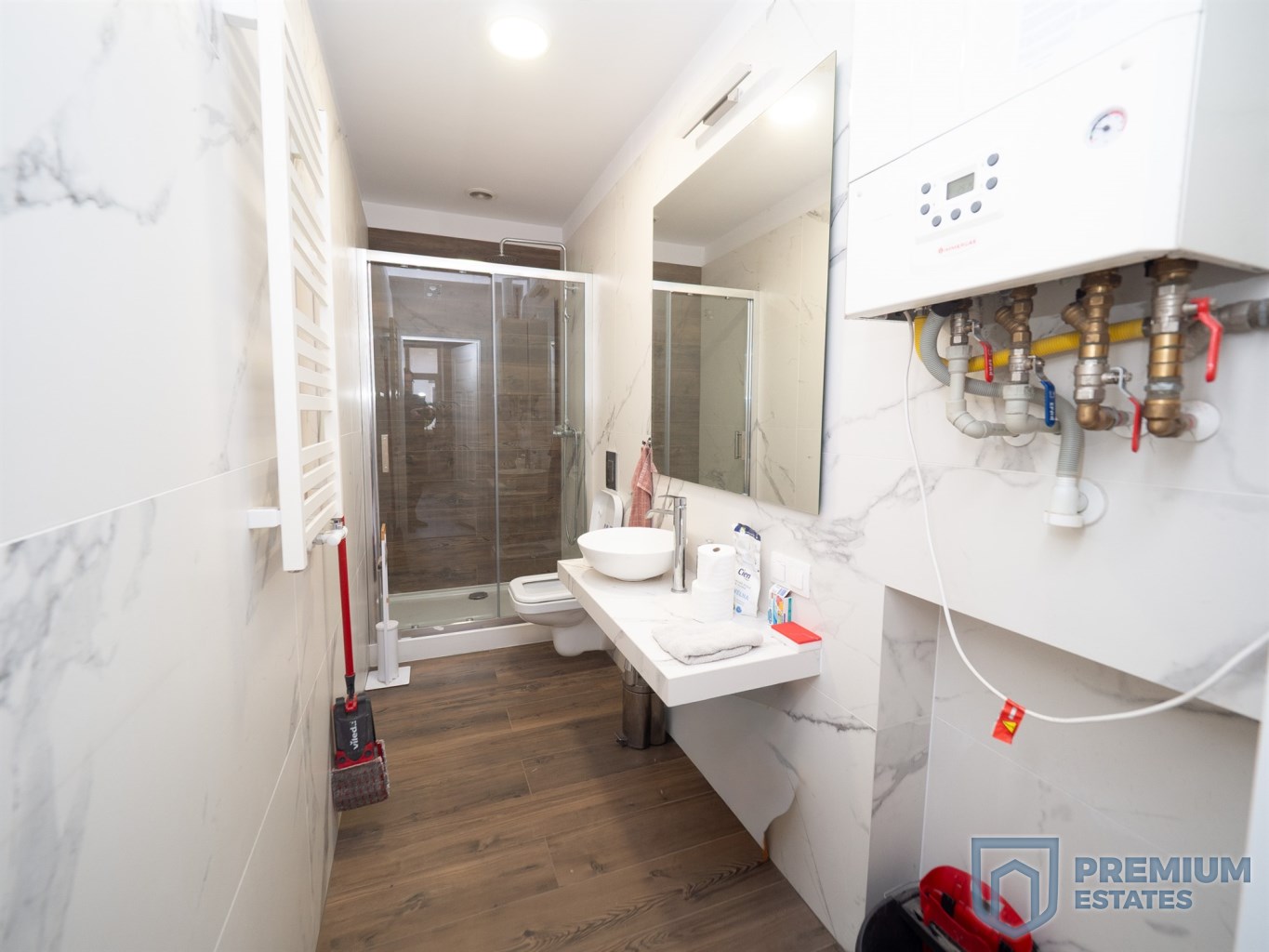 Heating and hot water are provided by a dual-function gas boiler. The staircase leading to the space has been recently renovated.