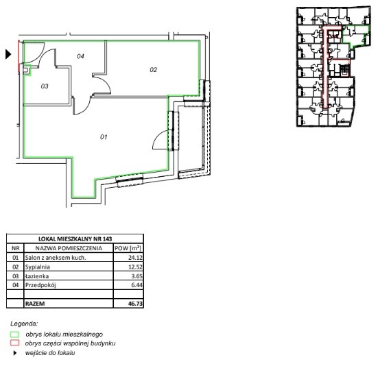 Powierzchnia 46,73 m², w skład której wchodzą: