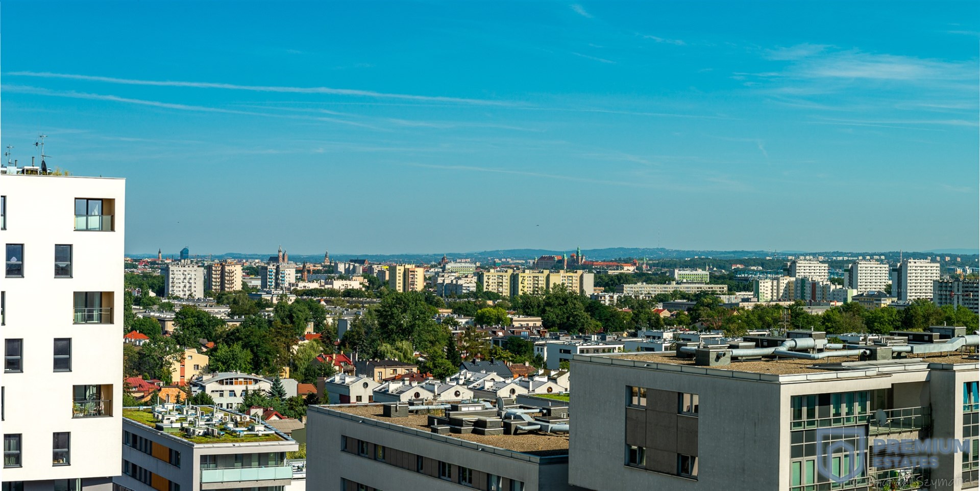 Z wnętrza mieszkania rozpościera się wyjątkowy widok na najbardziej ikoniczne punkty Krakowa: Wawel, Stare Miasto z Kościołem Mariackim i Ratuszem, a także Kopiec Kościuszki, Las Wolski i Kopiec Piłsudskiego. To nieruchomość, której największym wyróżnikiem jest niepowtarzalna perspektywa miasta — widok, który robi wrażenie każdego dnia.