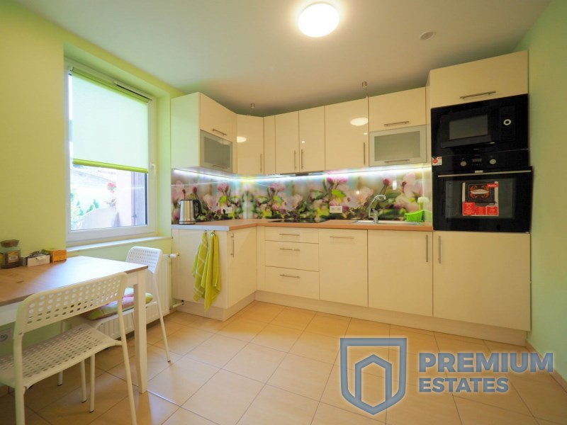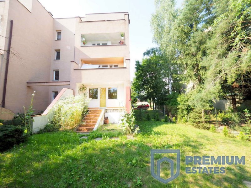 and a terrace and 150 m2 of garden exclusively for the use of residents. District heating, hot water from a boiler (in the future also from the municipal network). North and south exposure, very bright apartment. The apartment includes a large basement of 12 m2 and a utility room under the terrace. Possibility of parking in front of the building (no zone).