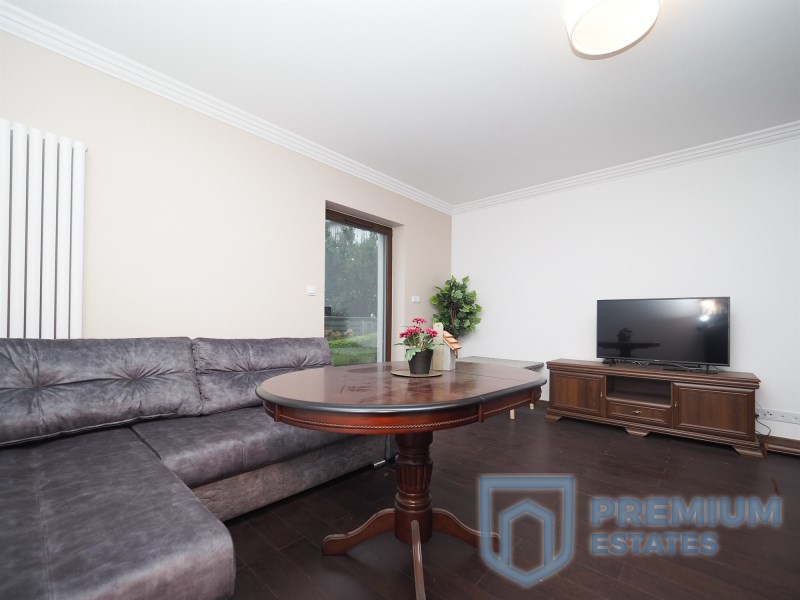– duży salon z aneksem kuchennym i wyjściem na ogród (lodówka, mikrofala, zmywarka, płyta indukcyjna),