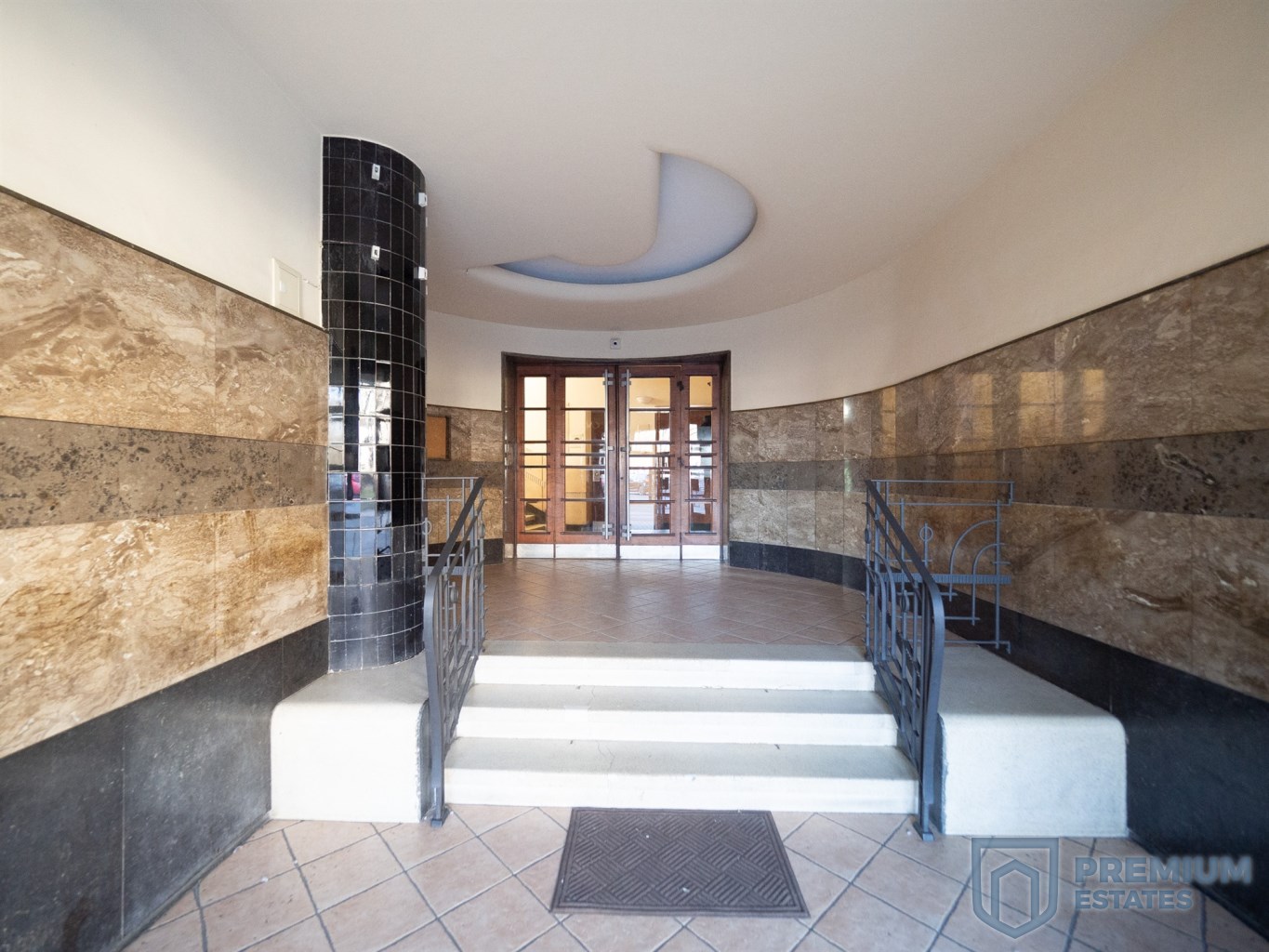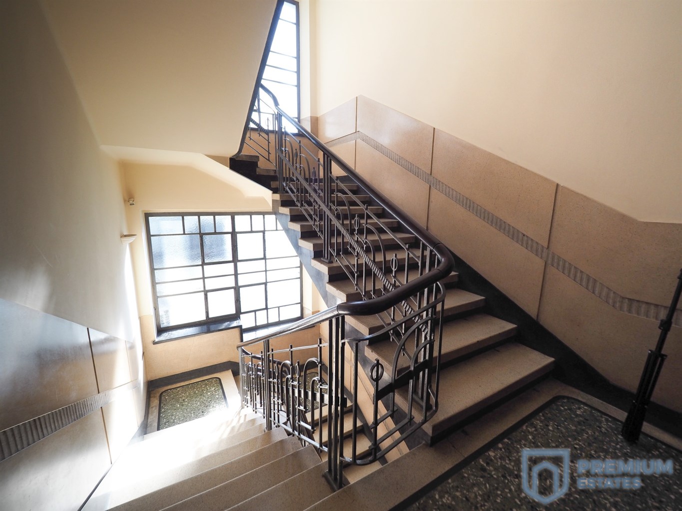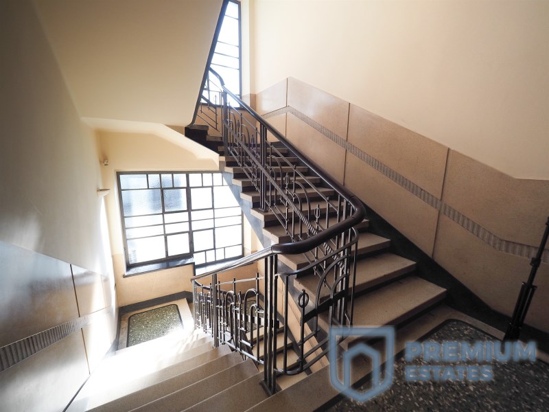 It is an elegant tenement house from the interwar period (1938) in the art deco style. Those who deserve recognition include: external doors to apartments and their frames, which are made of exotic wood - Caucasian walnut burl. Well-kept terrazzo floors. The building has an elevator and a dedicated bicycle space in the yard at the back of the building. Current monitoring. The tenement house is intimate, with only 3 apartments per floor. The basic building material is brick.