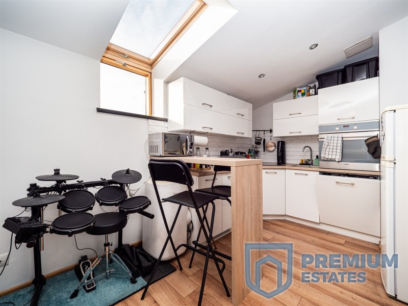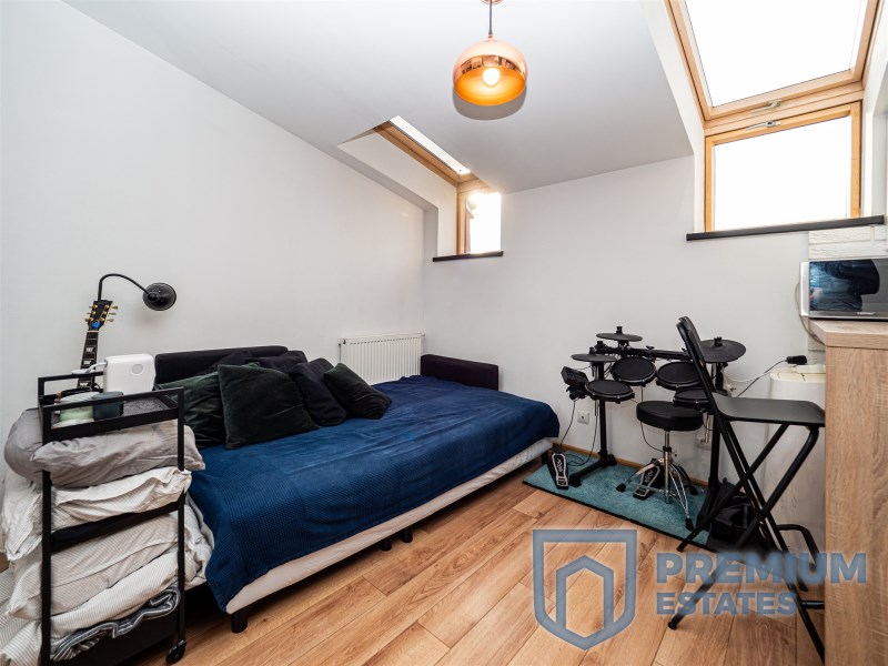 To wyjątkowe mieszkanie znajduje się w nadbudowie budynku, co nadaje mu niepowtarzalnego charakteru.