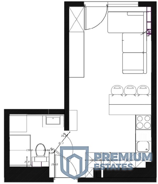 - salonu z aneksem kuchennym, z balkonem francuskim; kuchnia wyposażona w nowe sprzęty AGD (płyta indukcyjna, piekarnik, mikrofala);