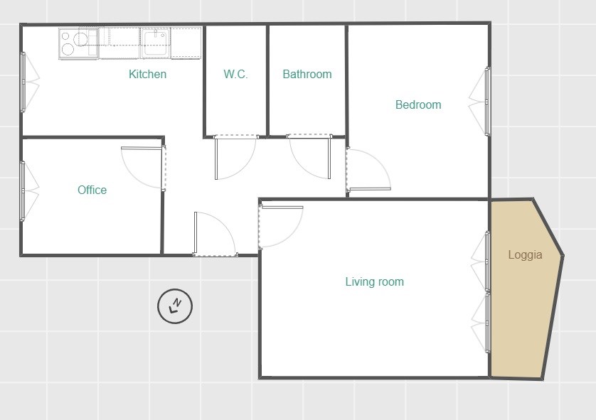 - trzech pokoi (home-office, salon i sypialnia)