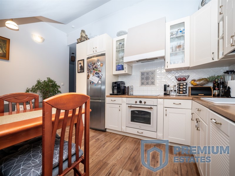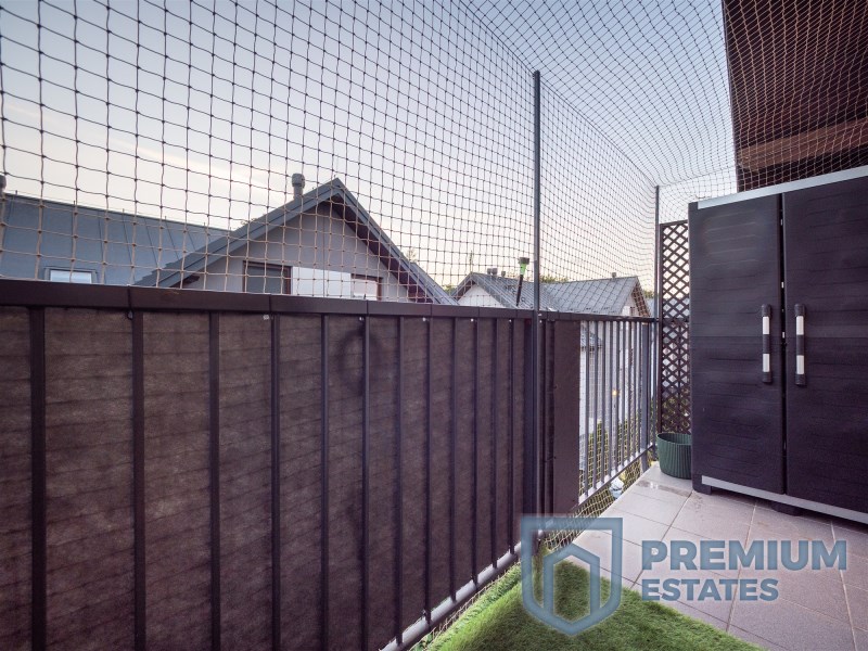 W przedpokoju na górze szafa na okrycia wierzchnie. W 1 sypialni zestaw mebli wykonanych na wymiar. Sypialnia 2 z wyjściem na balkon częściowo umeblowana. W łazience duża wanna, szafka umywalkowa z szufladami, toaleta, liczne szafki zabudowane. Ściany i podłogi wykończone dobrej jakości płytkami, ogrzewanie podłogowe.