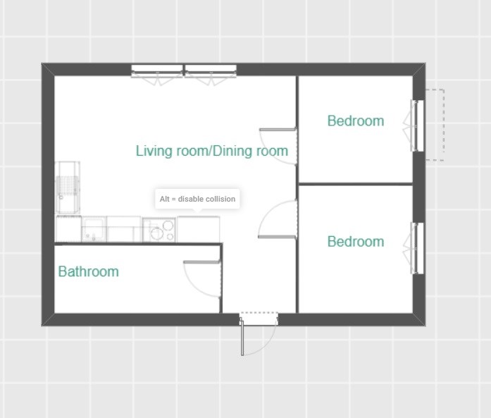 • 3 pokoje — salon z aneksem kuchennym i dwie sypialnie
