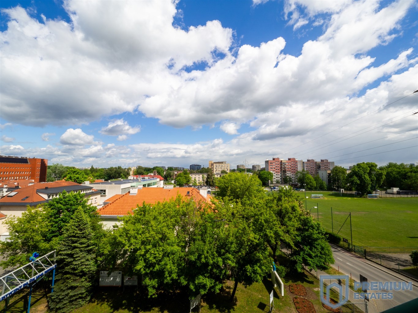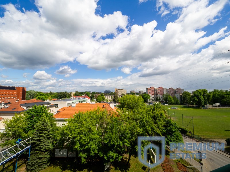Balkon z ekspozycją północną oferuje pełną prywatność – bez wysokich zabudowań za oknem i z widokiem na panoramę miasta.