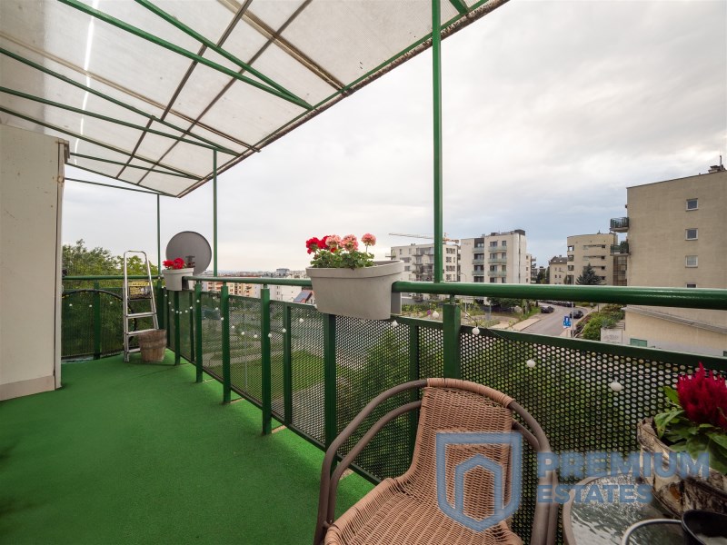 Jednym z największych atutów mieszkania jest słoneczny balkon o powierzchni ok. 12 m² z otwartym widokiem. Przy dobrej pogodzie można stąd dostrzec nawet panoramę Tatr.