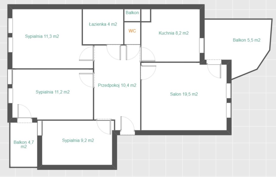 - 4 oddzielnych, komfortowych i przestronnych pokoi (dwa pokoje z balkonami);