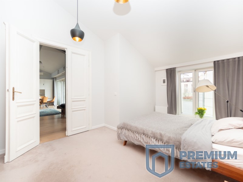 A unique 113 m² apartment is available for rent, located on the third floor of a renovated tenement building with an elevator, on Czysta Street in the very center of Krakow. This prestigious location is just a few minutes' walk from the Main Market Square, Planty Park, Jordan Park, and Wawel Castle.