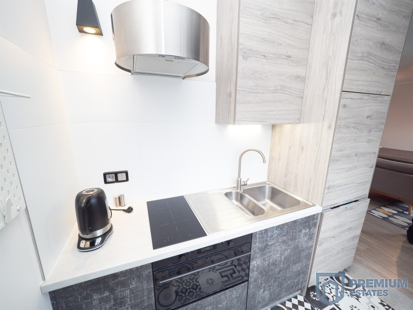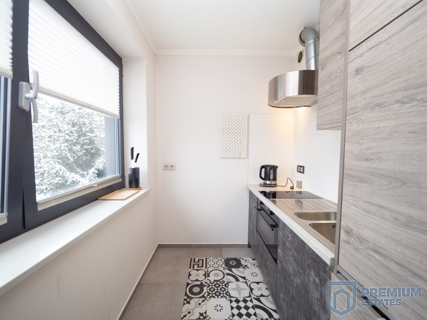 - kitchenette: refrigerator, freezer, dishwasher, oven, table with chairs, built-in kitchen furniture, induction hob,