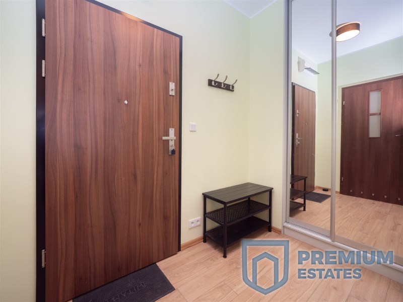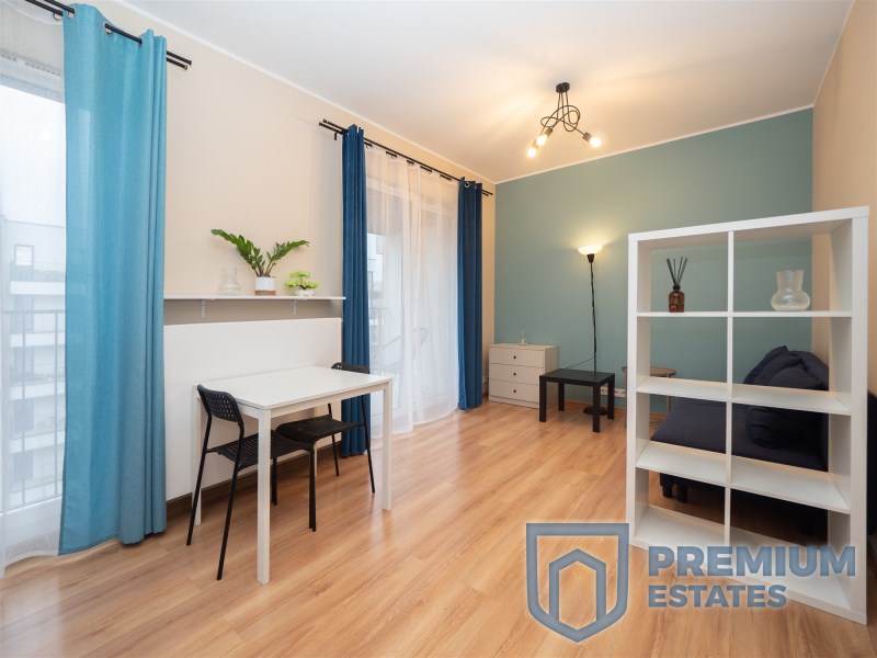 Mieszkanie posiada funkcjonalny, otwarty układ dużego pokoju z aneksem kuchennym. Oprócz tego przedpokój z dużą szafą oraz nowoczesna łazienka z prysznicem. Wyposażone we wszystkie niezbędne urządzenia. Mieszkanie posiada balkon z widokiem na wnętrze ogrodzonego osiedla. Budynek jest monitorowany, posiada ochronę 24/7.