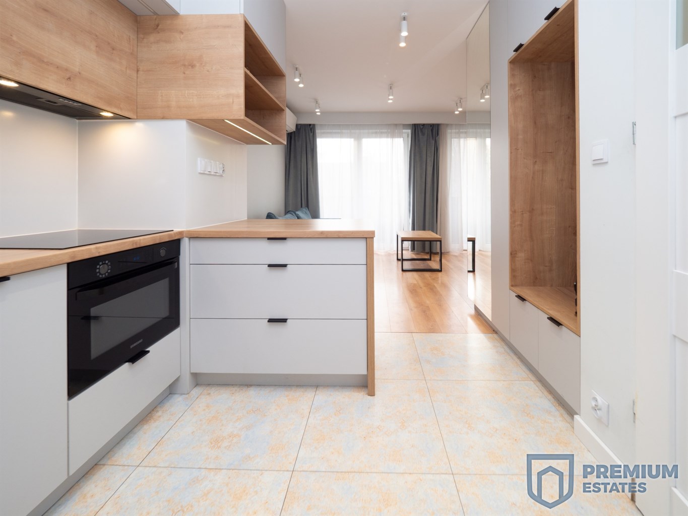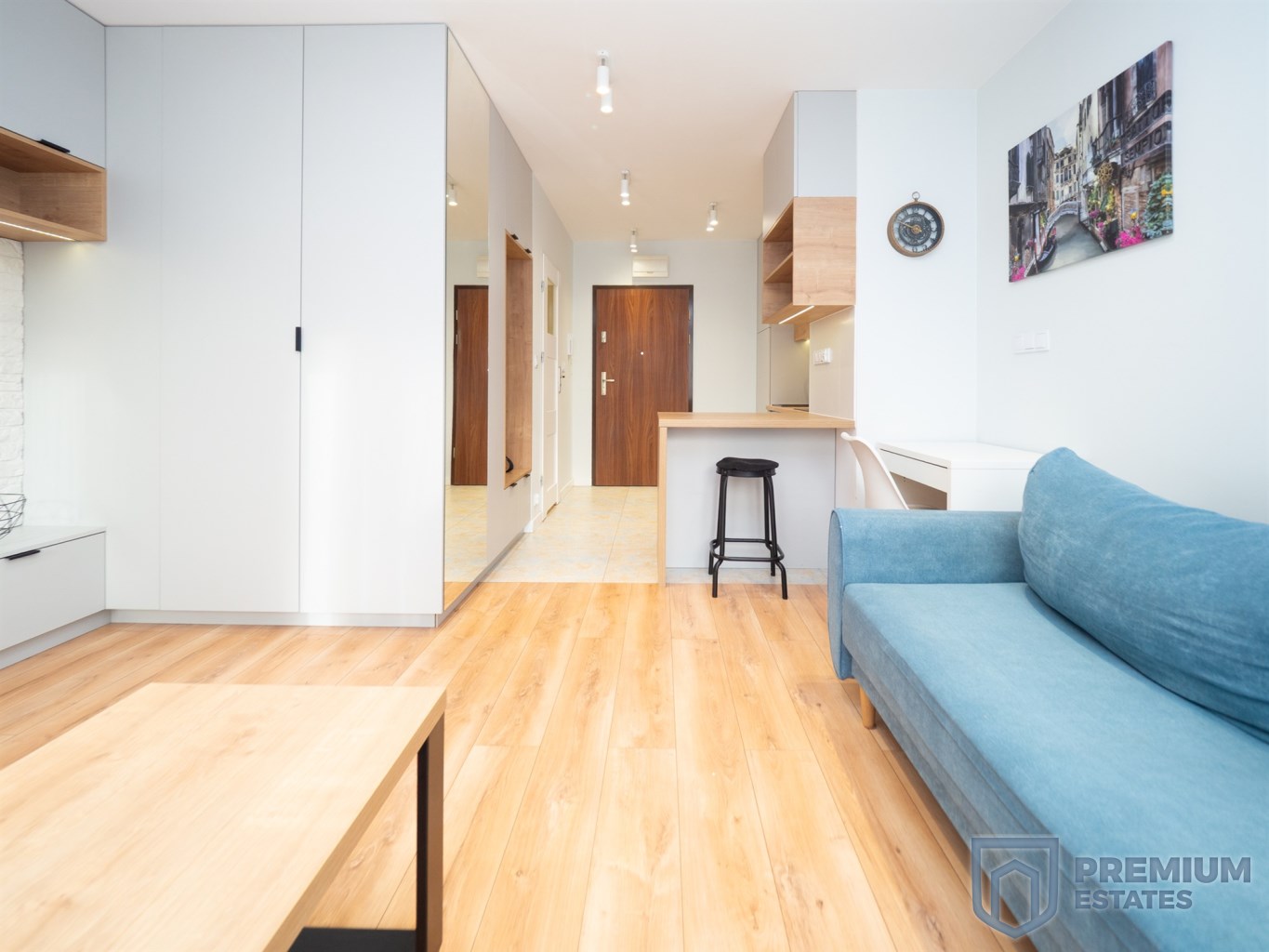 Wnętrze zostało urządzone w nowoczesnym stylu i wyposażone w wysokiej jakości sprzęty. Aneks kuchenny posiada płytę indukcyjną oraz piekarnik z funkcją mikrofali. Łazienka wyposażona jest w prysznic oraz ogrzewanie podłogowe. Mieszkanie klimatyzowane, w pełni umeblowane i gotowe do zamieszkania.