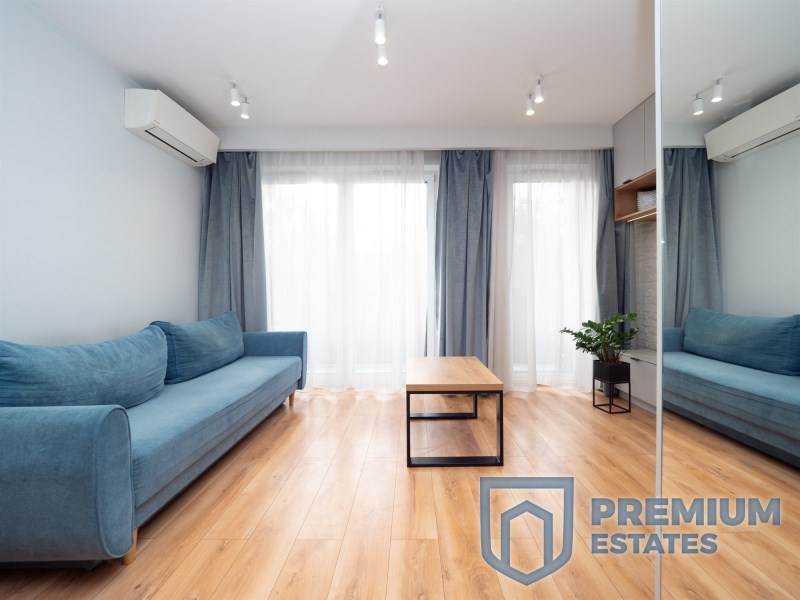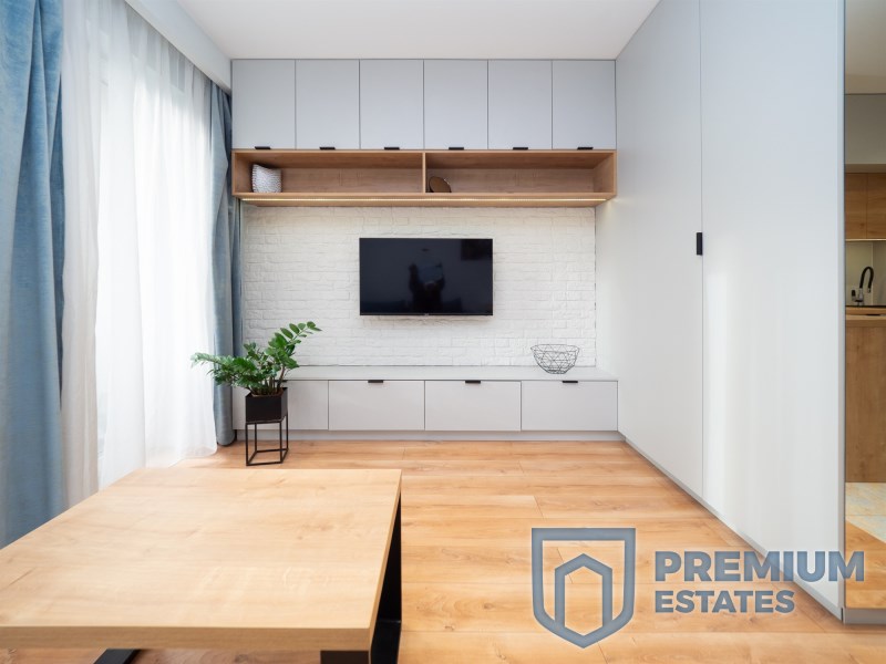 The apartment has an area of 27 m² and is located on the 1st floor of a low-rise building from 2019, without an elevator. The studio consists of a living area with a kitchenette, a bathroom and a hallway. The interior is finished in a modern style and fully equipped. The kitchenette includes an induction hob and an oven with a microwave function. The bathroom features a shower and underfloor heating. Air-conditioned apartment, fully furnished and ready to move in.