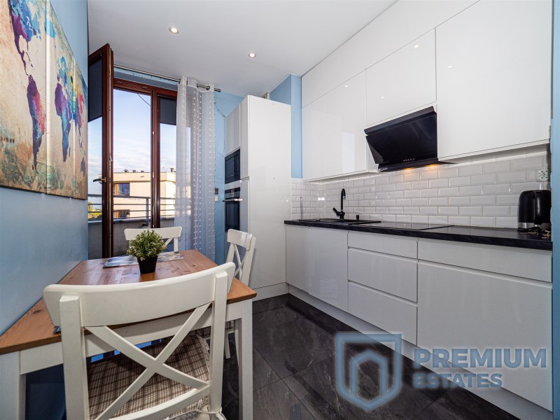 Premium Estates presents a stylish 2-room apartment (45.7 m² + 16.5 m² terrace) located in the modern Ogrody Żabińca complex.