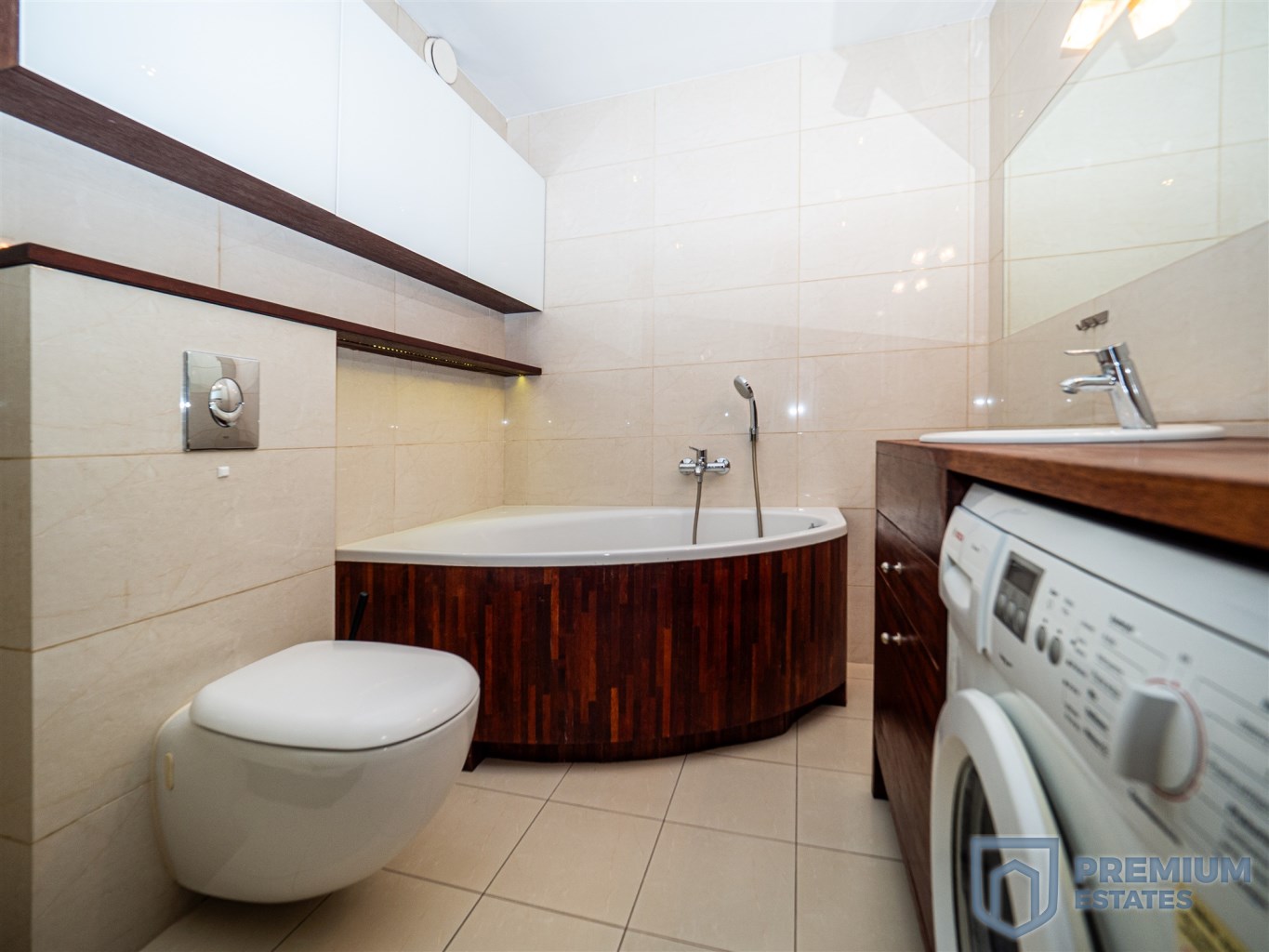 - łazienki z wanną, prysznicem, umywalką, WC i pralką,