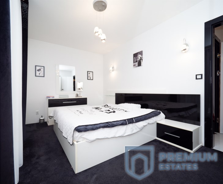 Apartament znajduje się na parterze, został urządzony w eleganckiej czarno-białej kolorystyce przełamanej czerwienią. Wnętrze zaprojektowano z dbałością o każdy detal, z wykorzystaniem najwyższej jakości materiałów i urządzeń.