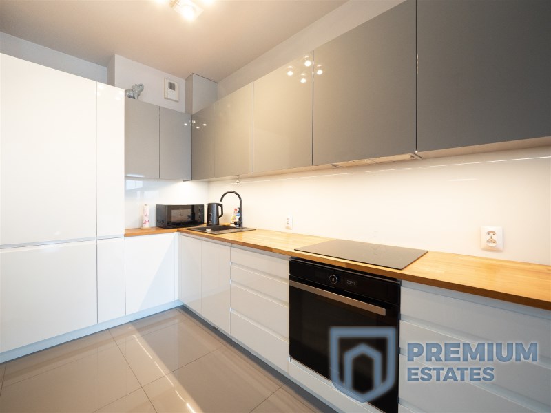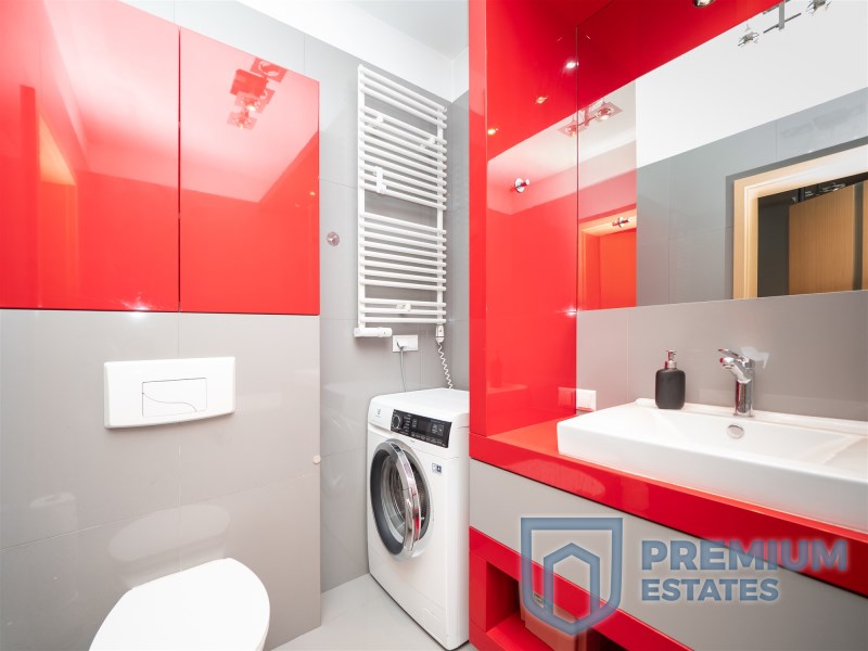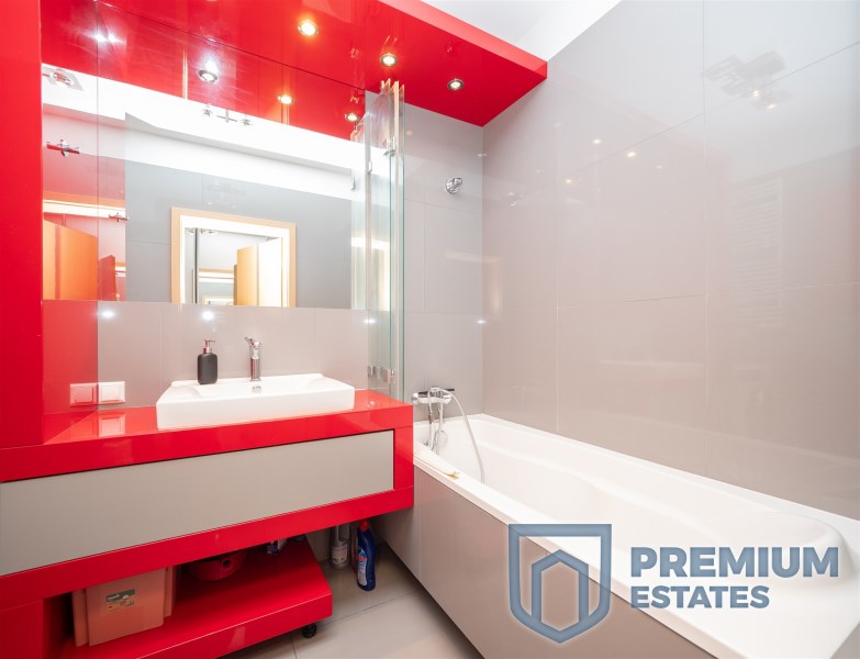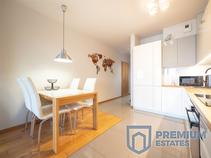 Wykończone jest bardzo nowocześnie, ale zarazem funkcjonalnie oraz wyposażone we wszystkie sprzęty AGD oraz klimatyzację. Dodatkowe wyposażenie na życzenie najemcy.
