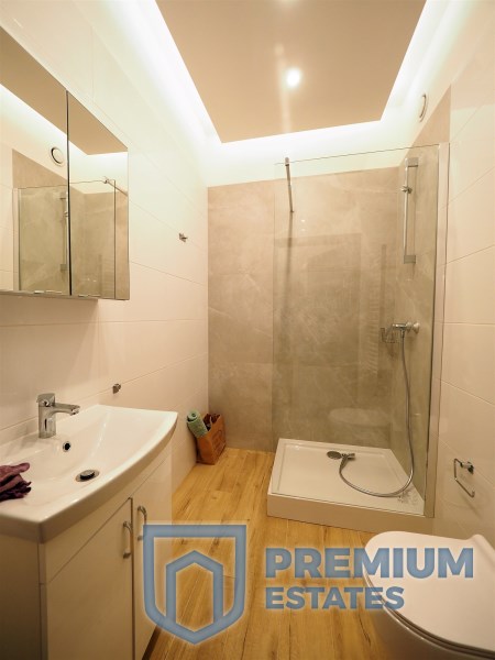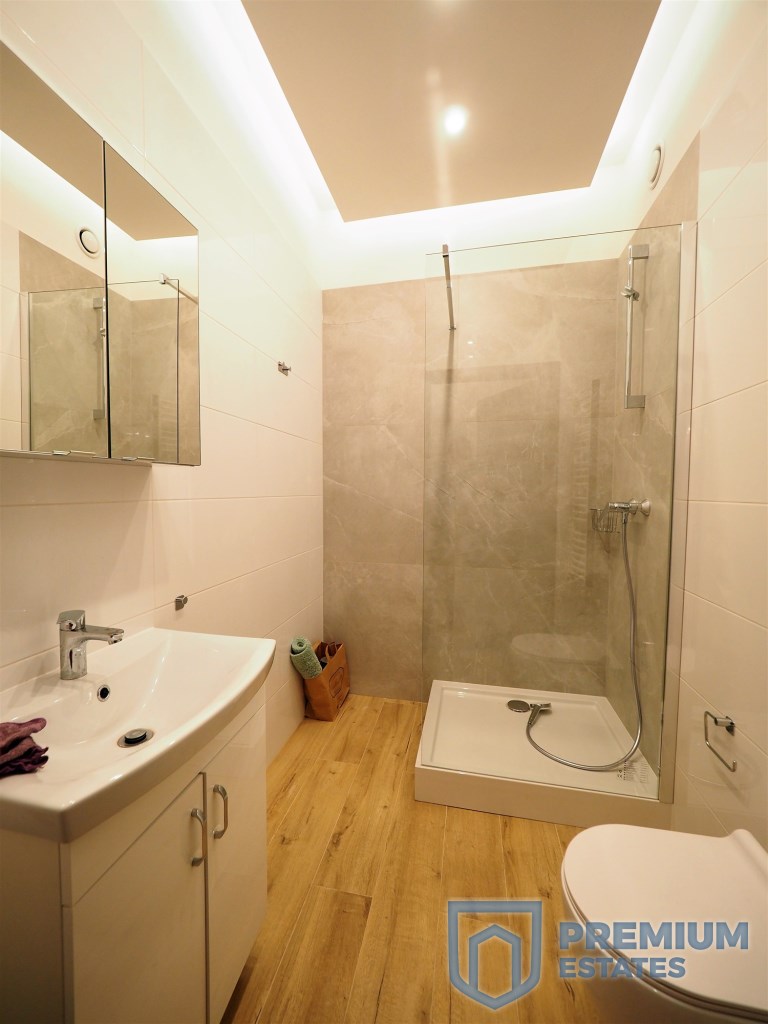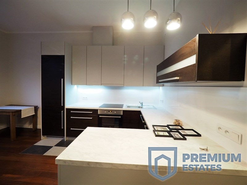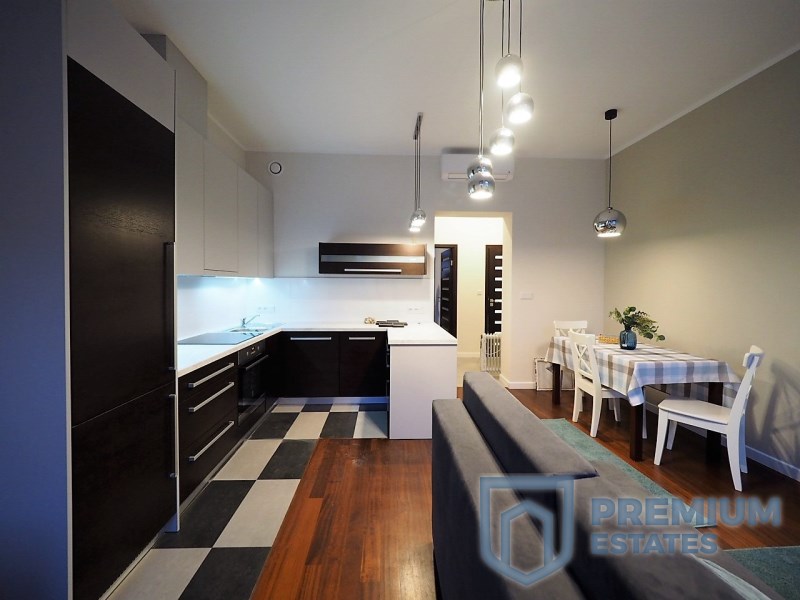 The apartment has been equipped with new furniture and designed under the supervision of an architect. Equipped with a new, large double bed, bedside tables, a table with chairs in the kitchen, a fold-out leather corner, TV cabinet.