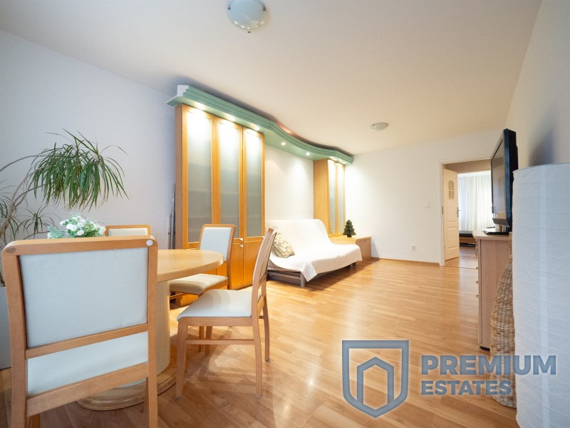 The apartment has an area of 57 m². The layout is functional, and the interiors are modernly finished and fully equipped.
