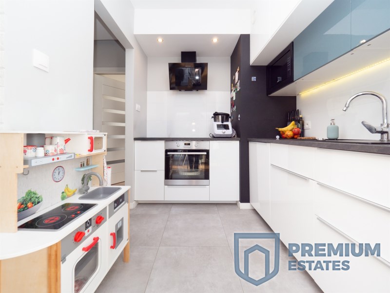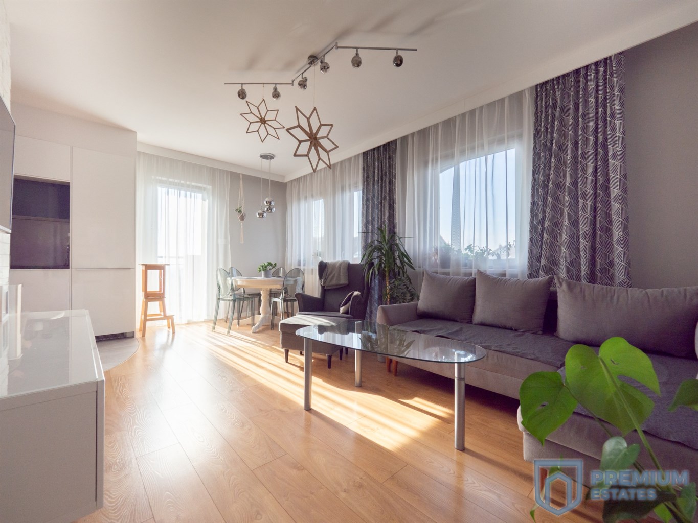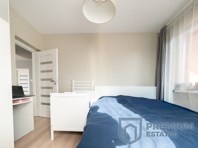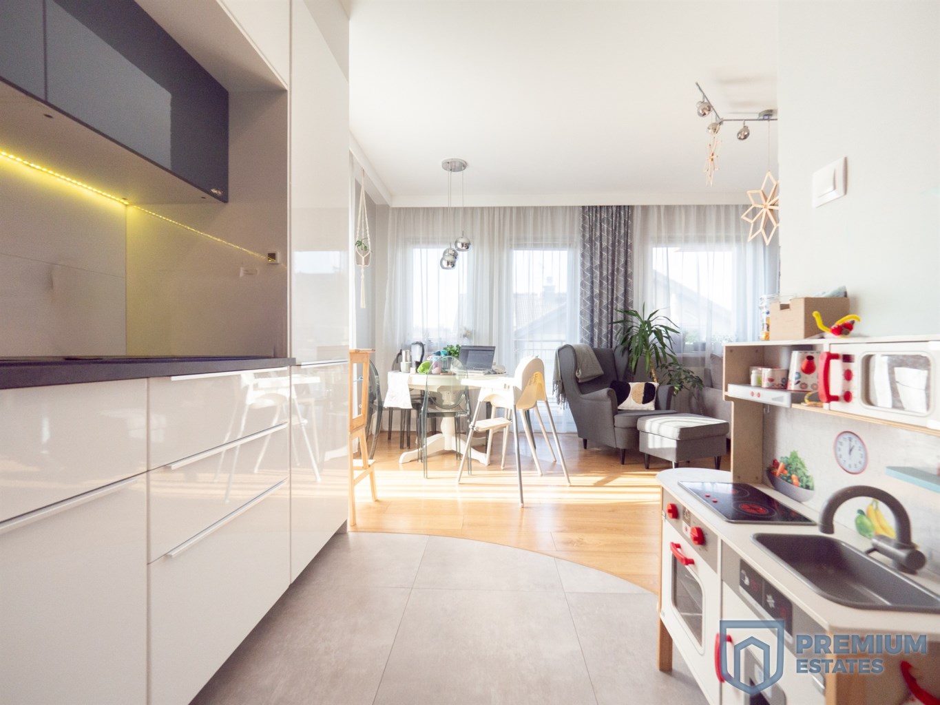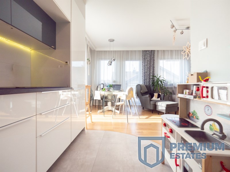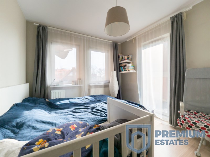 The apartment is located on the 2nd floor of a modern building from 2012. Access to the estate is secured by a barrier, ensuring comfort and safety for residents. The area is quiet, green, and very well connected.