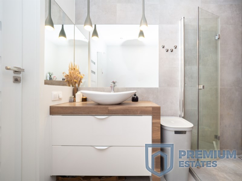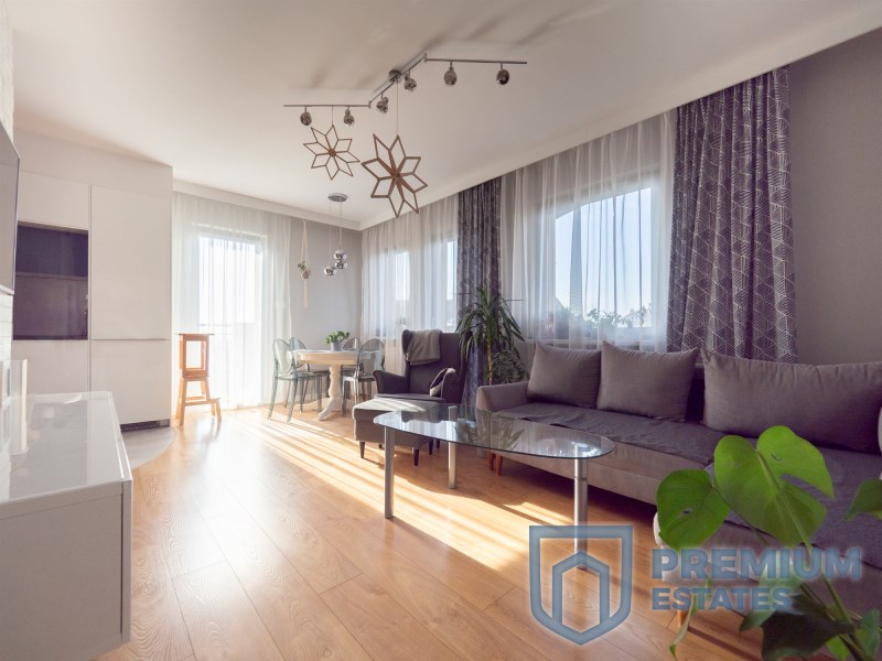 Area: 57 m². The apartment is finished to a high standard, well maintained, fully furnished, and ready to move in. It features a three-sided exposure, ensuring excellent natural light throughout the day.