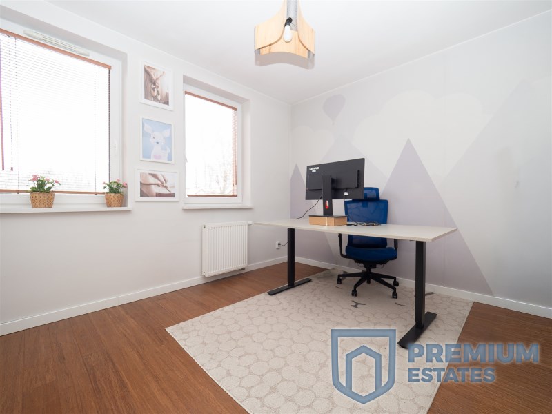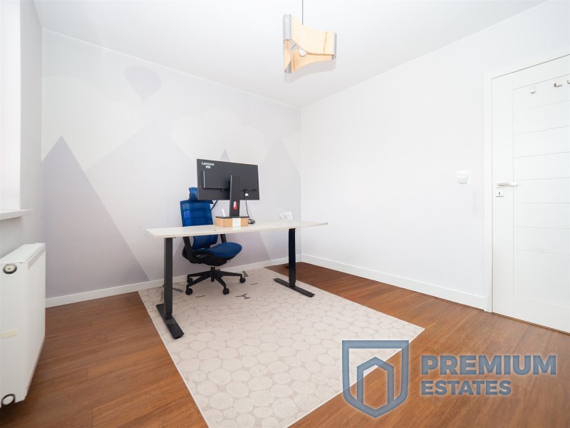 - drugi pokój pełniący funkcję gabinetu lub dodatkowej sypialni, wyposażony w biurko i ergonomiczne krzesło,