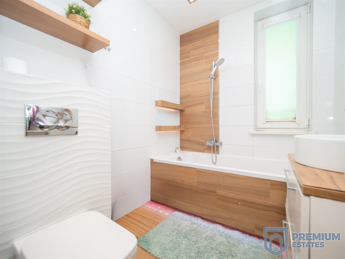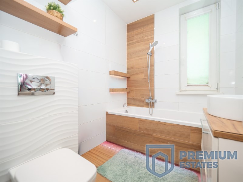 - jasna łazienka z oknem, przestronną wanną, pralką oraz dużą szafą do przechowywania,
