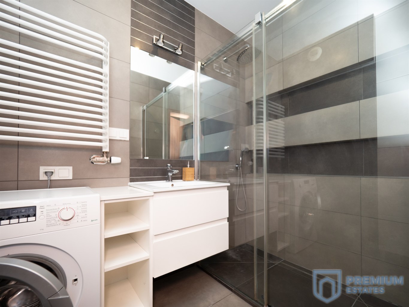 - a bathroom with a shower cabin and a washing machine (3.93 m²),