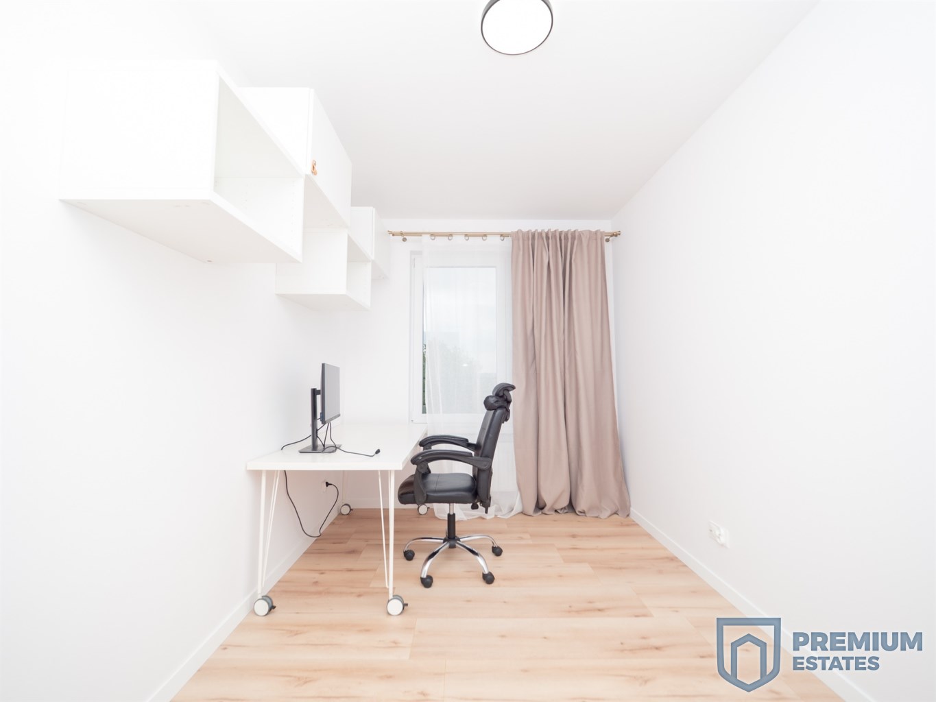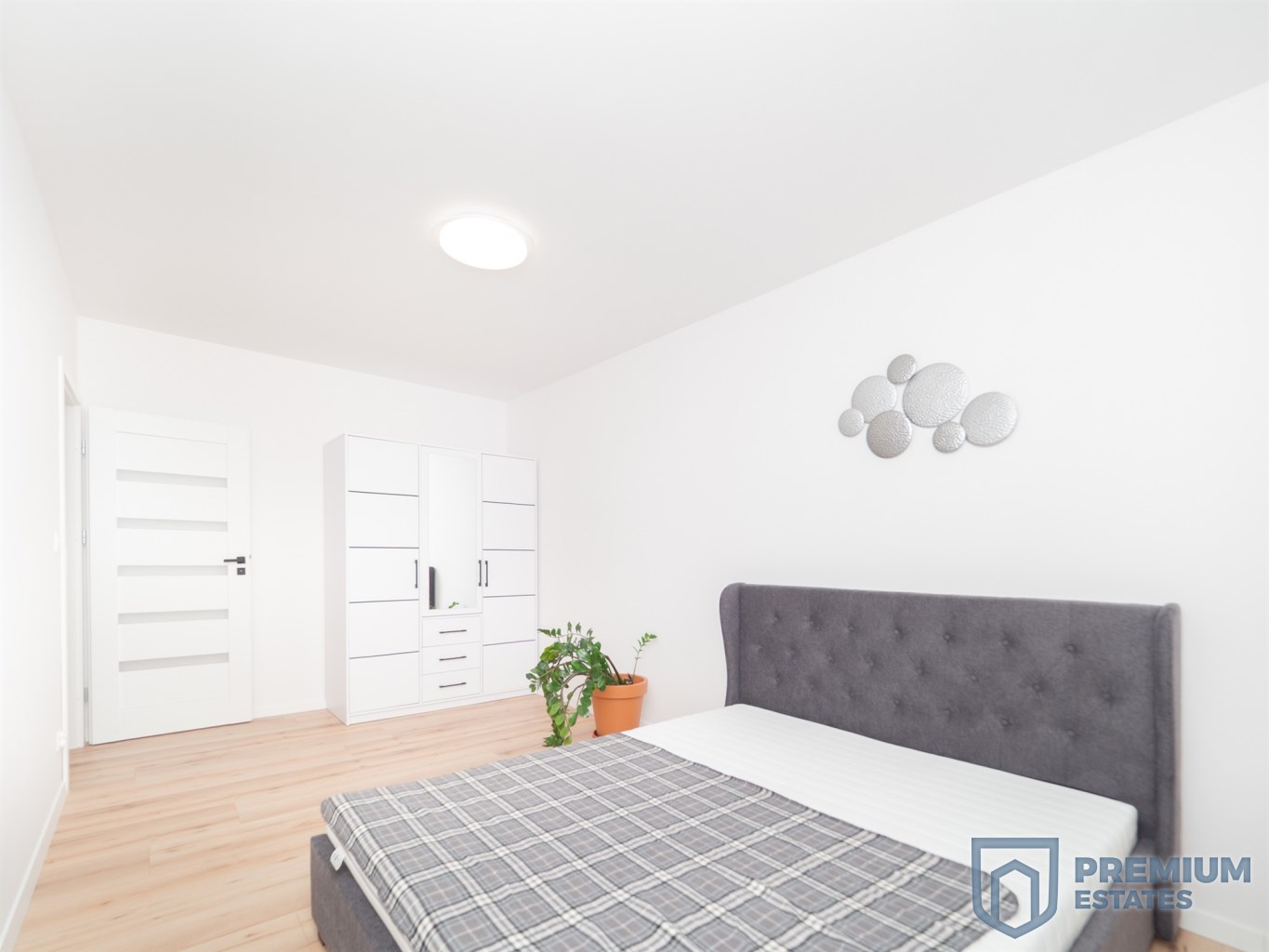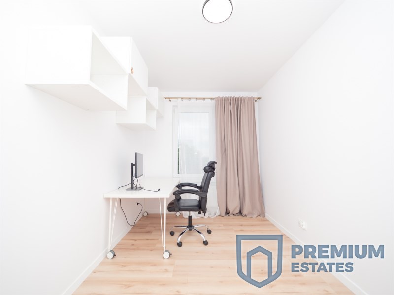 Drugi pokój może pełnić funkcję sypialni lub gabinetu. Znajdują się w nim dwudrzwiowa szafa, szafki wiszące, stół oraz krzesło. Istnieje również możliwość doposażenia pokoju w łóżko lub sofę, zgodnie z potrzebami najemcy.