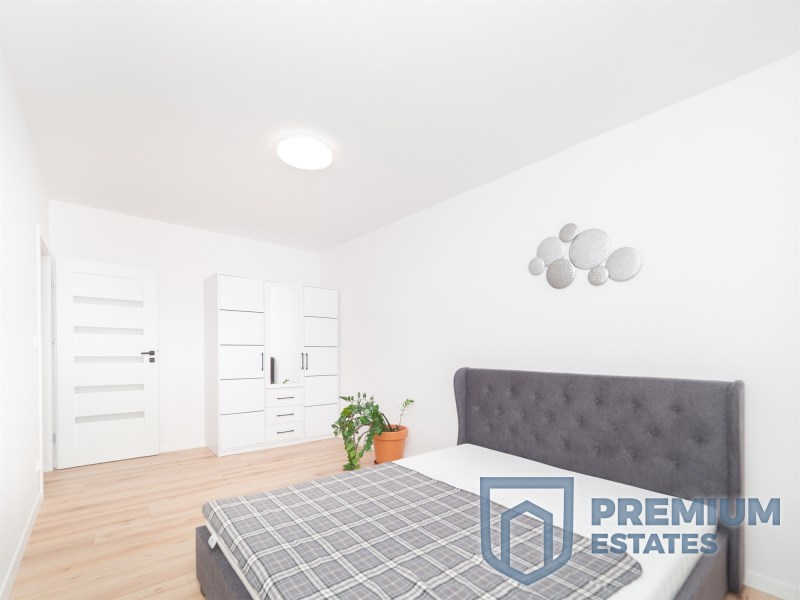 Sypialnia została wyposażona w wygodne łóżko z materacem 160x200 oraz pojemną, trzydrzwiową szafę. Do dyspozycji najemcy pozostaje również deska do prasowania oraz suszarka na pranie. Kuchnia została w pełni wyposażona w sprzęt AGD, w tym lodówkę z zamrażarką, płytę indukcyjną, piekarnik, zmywarkę, czajnik oraz niezbędne akcesoria kuchenne, takie jak sztućce, patelnia, garnki, talerze, kubki i inne elementy wyposażenia.